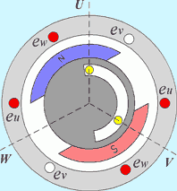 А для пущего удобства выворачиваем двигатель наизнанку — гораздо проще вращать магнит или простенькую обмотку возбуждения, чем якорь со всей этой тряхомудией на борту. В качестве ротора тут выступает либо мощный постоянный магнит, либо обмотка питаемая с контактных колец. Что хоть и смахивает на коллектор, но не в пример надежней его.