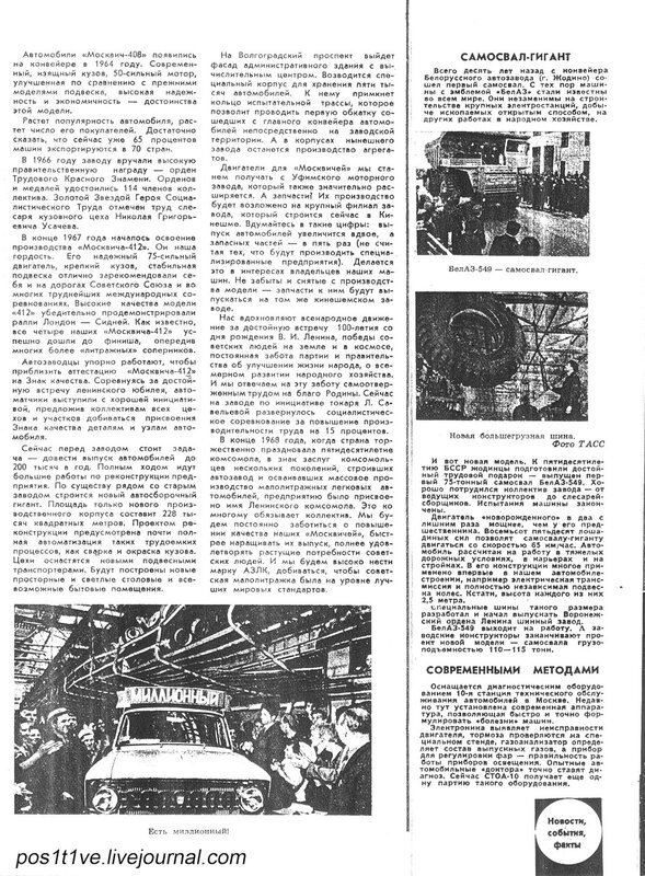Однако для СССР главным был, конечно, экспортный рынок. Мировой дебют М-408 состоялся в 1964 году на Лондонском Автосалоне. Вот что по поводу появления М-408 на "загнивающем" западе писали тогда газеты: (фото предоставлено пользователем diecast43 )
