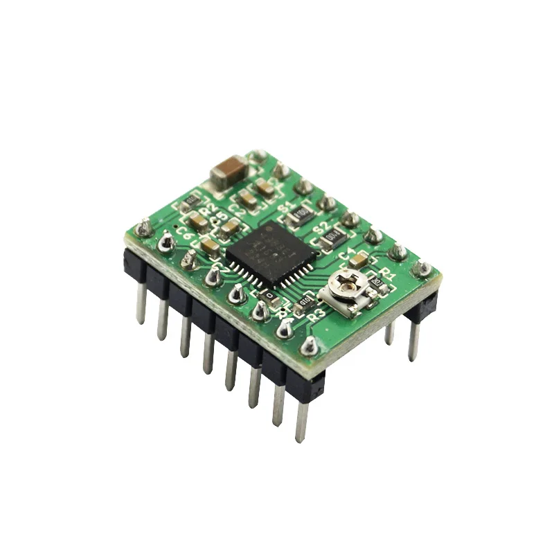 Модуль драйвера шагового двигателя A4988 был разработан как коммутационная плата, способная управлять шаговым двигателем с четырьмя, шестью или восемью проводами с пятью различными разрешениями микрошагов. Он может работать при токе до 2 А и напряжении от 8 до 35 В с радиатором и включает в себя защиту от перегрузки по току, блокировку при пониженном напряжении, а также защиту от перекрестных токов. Это позволяет ему работать вместе с другими частями и компонентами системы или как отдельный контроллер, реагирующий на команды пользователя или отдельной системы.