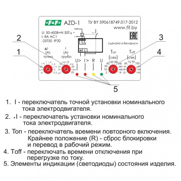 Уставка срабатывания задается при помощи поворотного регулятора на лицевой части.