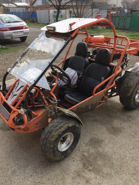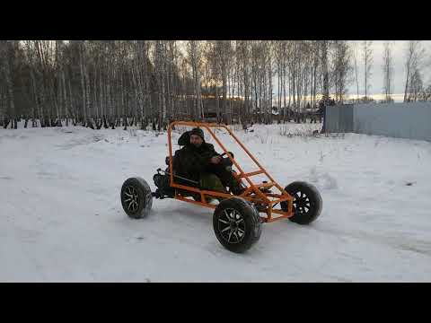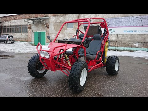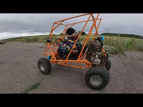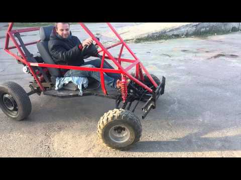 Багги сделан для внука, поэтому максимальная скорость машины составляет — 50 км/ч. Но скорость можно увеличить до 100 км/ч, если поменять два шкива, мощности мотора объёмом 200 см.