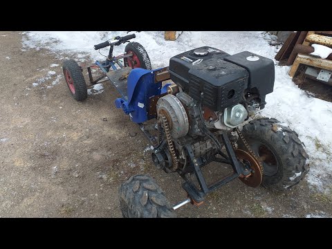 Помимо караката из мотоблока можно соорудить и самодельный квадроцикл из мотоблока, представляющий собой четырехколесный безопасный и маневренный мотоцикл.