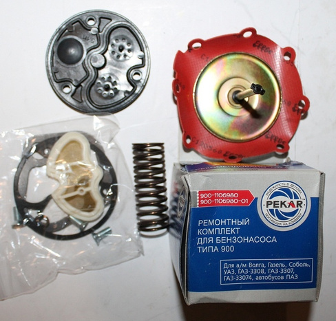 Клапан насоса состоит из обоймы, изготовляемой из цинкового сплава, резинового клапана и латунной пластины, поджимаемых пружиной из бронзовой проволоки. Над всасывающими клапанами насоса установлен фильтр, изготовленный из мелкой латунной сетки. Для заполнения карбюратора топливом при неработающем двигателе насос имеет рычаг ручного привода. Для предотвращения попадания бензина в картер при повреждении диафрагмы в корпусе насоса имеется отверстие с сетчатым фильтром.