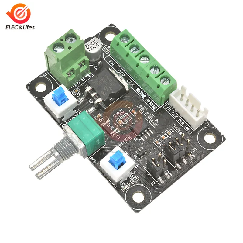 - Регулируемое управление током позволяет установить максимальный выходной ток, что позволяет использовать напряжения выше номинального напряжения вашего шагового двигателя для достижения более высокой частоты шагов