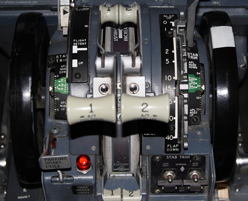 Для летного экипажа органы управления двигателем у прохода (рис. 4) остались без изменений, но оборудование внутри стойки у прохода и под полом было полностью переработано.