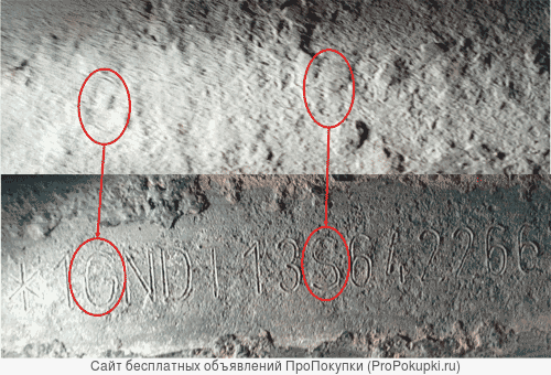 При этом образуется сплошное поле из точечных углублений — «лунная поверхность». Очень часто после очистки такого номера распознать знаки маркировки бывает весьма и весьма проблематично. Более устойчивыми с этой точки зрения являются знаки маркировки, набитые ударным способом при помощи клейм знаков или выполненные фрезерованием.