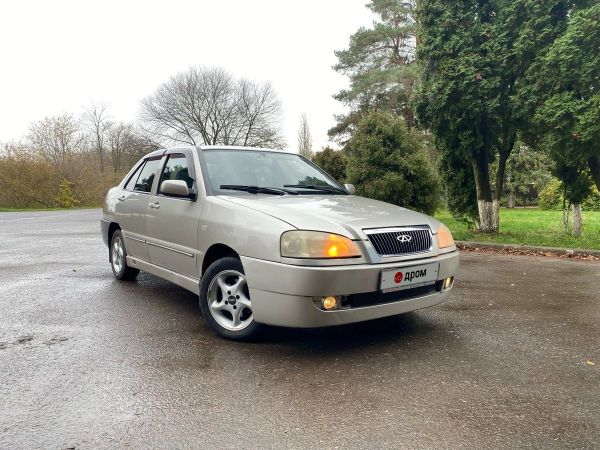 К данному классу относится и Skoda Octavia. В сравнении с Испанской машиной, решетка радиатора Chery щедро отделана хромом. Очень многие машины окрашены в черный цвет, а черный окрас вместе с хромом придает машине некоторую дороговизну. Фары головного света значительно более крупные чем у Seat, автомобиль уже в базовой комплектации оснащается фарами дополнительного света в переднем бампере. Боковые молдинги на дверях окрашены в цвет кузова, что также играет на «дорогой» образ машины. Дверные ручки под естественный хват являются приятным бонусом для покупателя, такие ручки есть не у всех конкурентов. Машина стоит на дисках диаметром 14 дюймов, на которые одета высокопрофильная покрышка. Сами колесные арки кажутся довольно крупными, они навевают мысль о установке более крупных колес. Верхняя часть задней колесной арки не закругленная, а прямая — это отличительная деталь данного автомобиля. Оптика задней части довольно массивна, одна половина фонаря расположена на кузове, а вторая на крышке багажника.