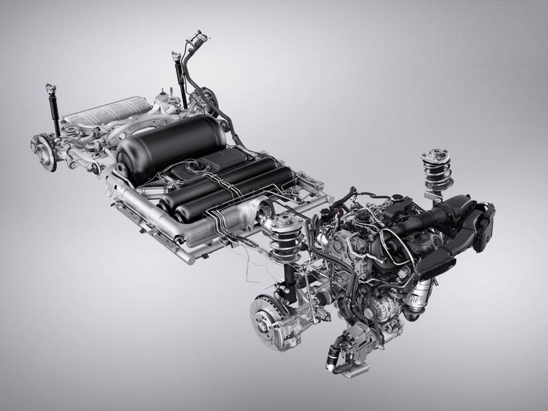 - CNG Аккумуляторы: заполняется 150 кубических метров при 200 бар.