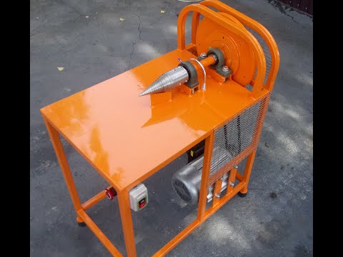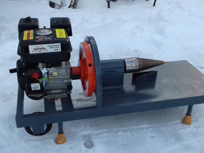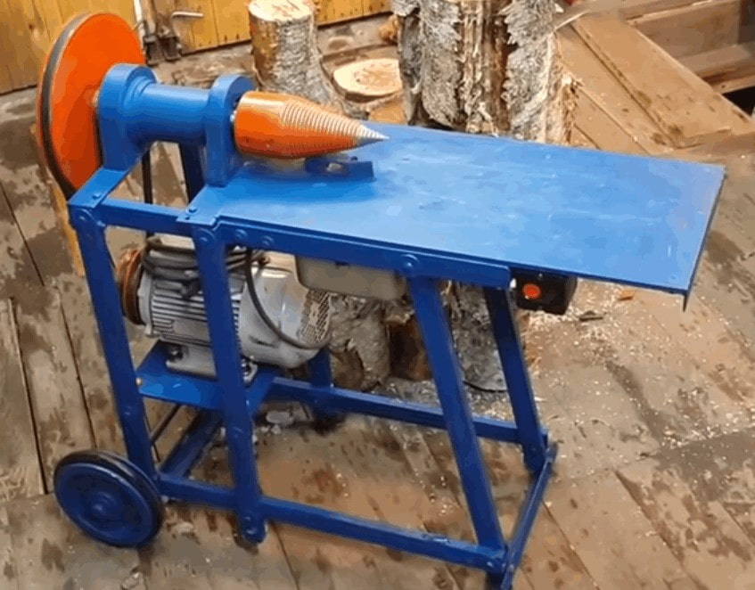 Конечно, если есть возможность найти все вышеперечисленные детали к станку. Но есть вариант более простой. Для него нет необходимости использовать редуктор и подшипники, промежуточный вал и сложную станину. Все, что вам потребуется, это двигатель и винтовой конус. Чтобы вы поняли, о чем идет речь, посмотрите на фото ниже, где показан этот простой дровокол.