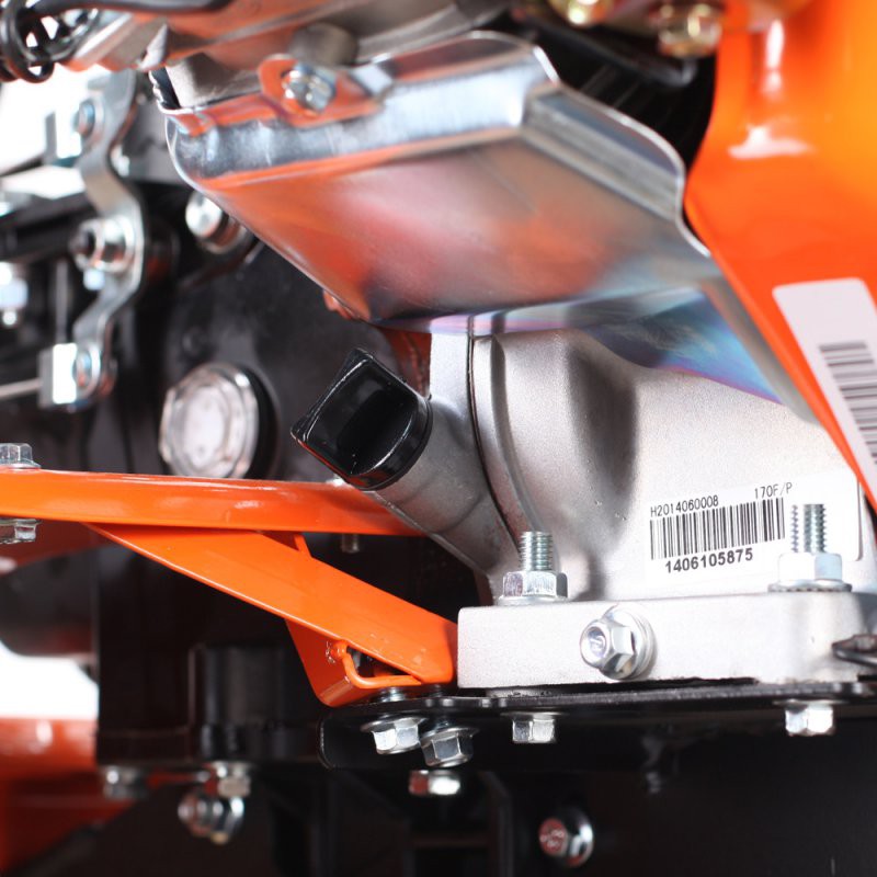 Эта хитрая конструкция из труб выполняет функцию каркаса безопасности — защищает двигатель от повреждений в случае опрокидывания мотоблока или каком-то другом внешнем воздействии, служит дополнительным крепёжным элементом для кантовки изделия при перевозке, например в кузове грузовика