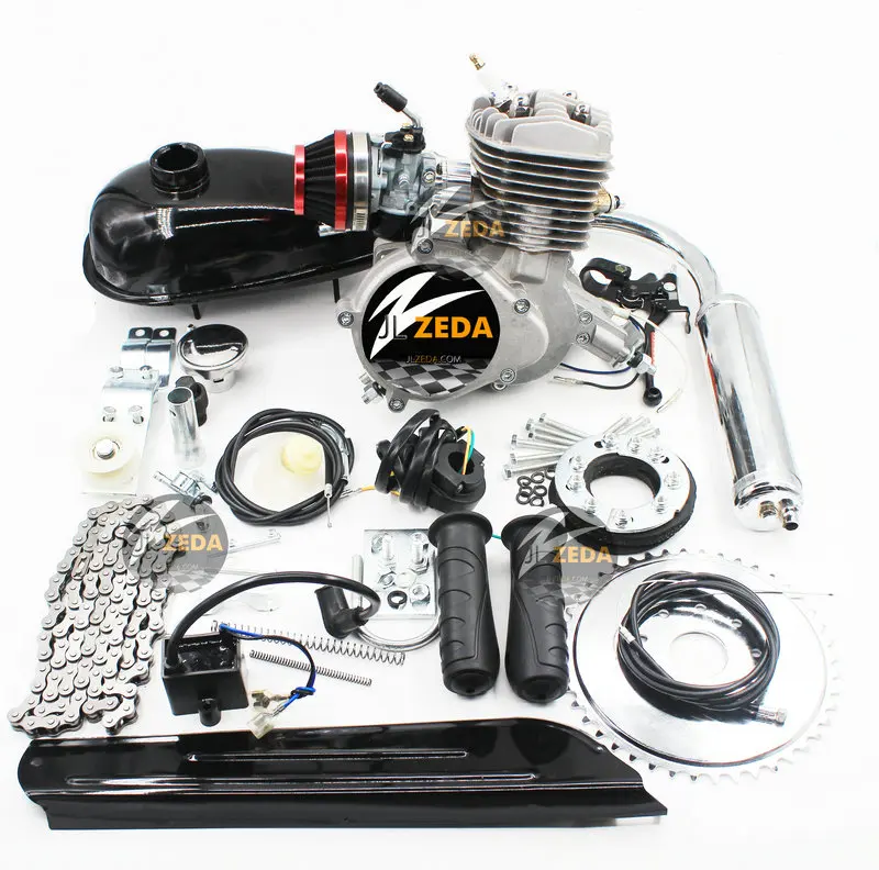 Двигатель велосипедный +стартер (в сборе) 80сс (бак, ручка газа, звезда, цепь) .Завод.