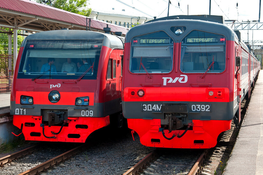 Это уже в Выборге. Можно сравнить ДТ1 с ЭД4М. Наш дизель-поезд чуть ниже электрички.08