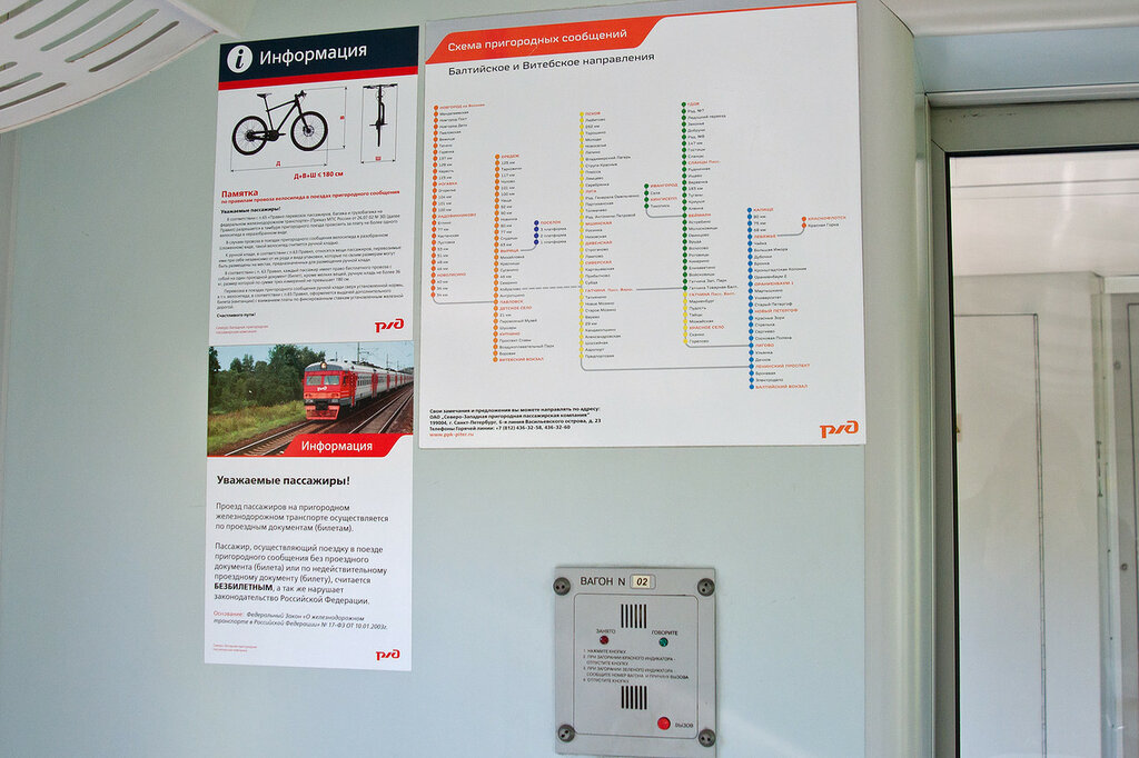 В вагонах висят схемы железных дорог, идущих на запад и юго-запад от Санкт-Петербурга. Мы же находимся к северу от города на Неве. То есть состав перегнали на Финляндское направление совсем недавно.05
