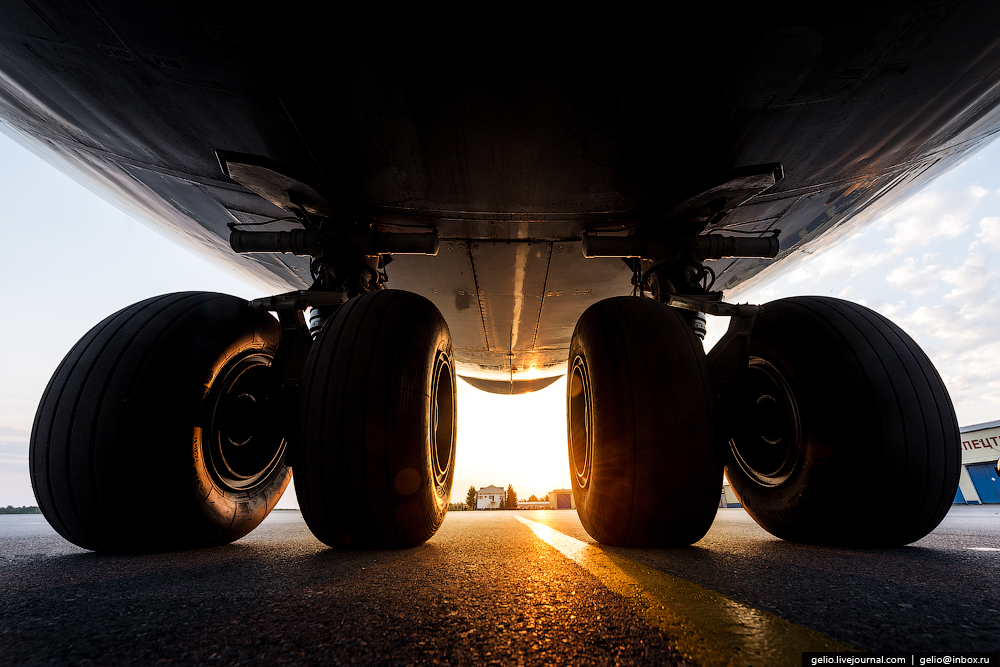 Шасси самолета по конструкции является многоопорным, состоит из 24 колес. Ан-124 – единственный в мире тяжелый транспортный самолет, способный производить взлет и посадку с грунтовых аэродромов.