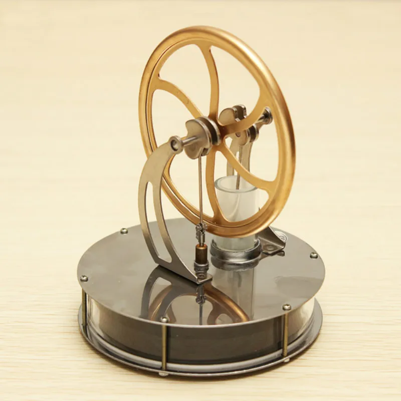 Для работы указанного выше двигателя требуется разность температур между верхом и низом. В этом случае для запуска двигателя достаточно разницы между температурой вашей руки и пары льдинок.