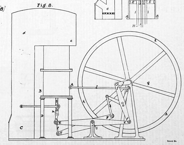 Теперь я объясню следующую блестящую идею Роберта Стирлинга использовать это высокое давление для запуска силового поршня. Один и тот же силовой поршень может перемещать буек вверх или вниз. Посмотрим, как он этого добился на практике. Вы можете видеть на рис.