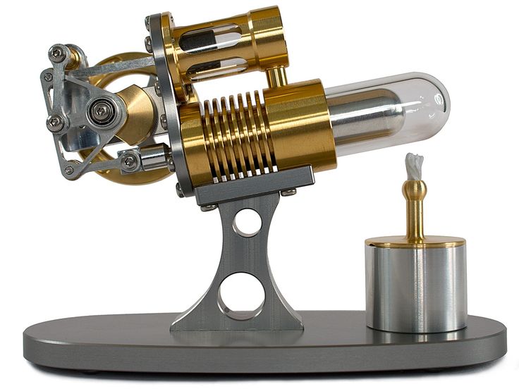 Двигатель Стирлинга — это тепловой двигатель, который сильно отличается от двигателя внутреннего сгорания в вашем автомобиле. Двигатели Стирлинга используются только в некоторых очень специализированных местах, таких как подводные лодки или вспомогательные генераторы для яхт, где важна бесшумная работа.