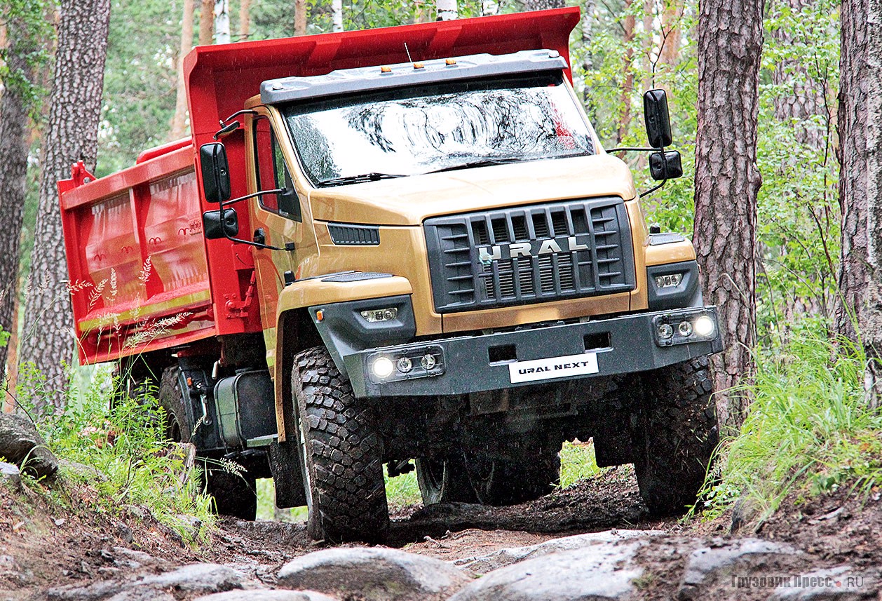 Зато теперь — Урал Next! Управлять им приятно, передачи в коробке ZF переключаются легко, и блокировок дифференциалов полно. А насколько эластичен рядный мотор ЯМЗ: самосвал, груженный пятью тоннами песка, легко стартует даже с четвертой ступени девятиступенчатой коробки ZF — и затем, после выхода на более высокие передачи, везет с горки на горку словно на «автомате».