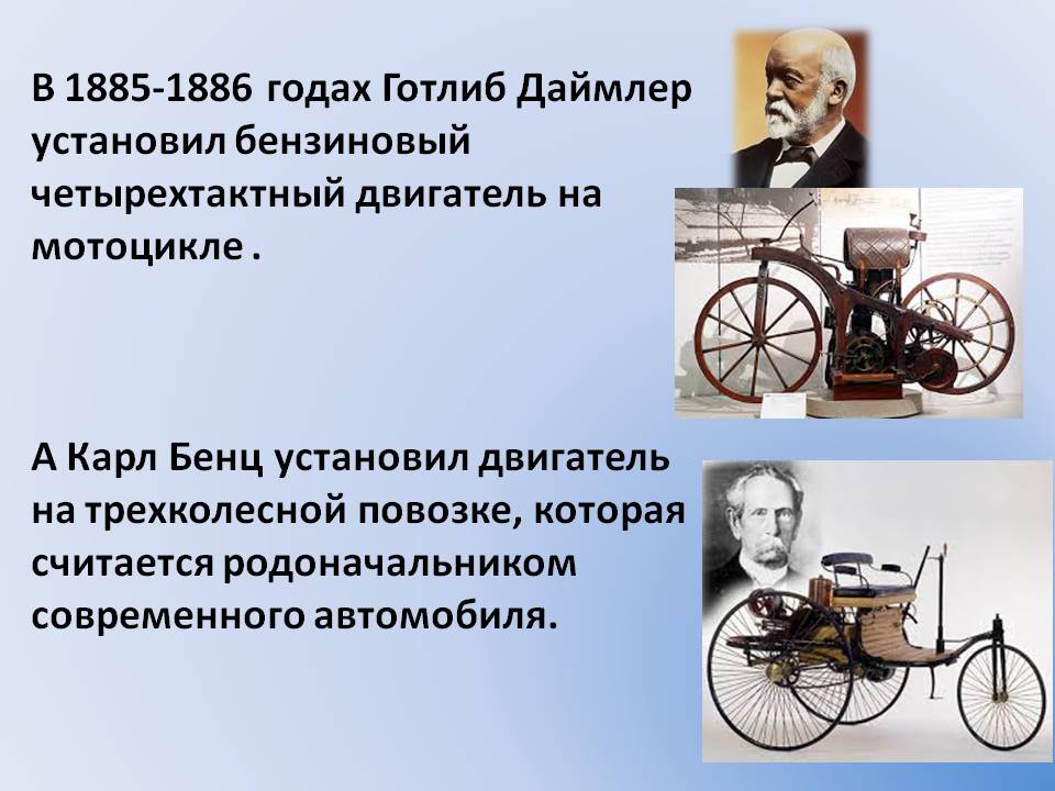 Уже в XX веке двигатель внутреннего сгорания стал основным типом двигателя для создания автомобильного транспорта по всему миру.