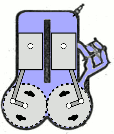 Геометрическое соотношение между шатунами, седлами и коленчатыми валами на ФИГ. 2А и 2В, удерживает шатуны в основном под растягивающим напряжением, когда поршни 12 и 14 перемещаются в цилиндре 10 , с ограниченным уровнем сжимающего напряжения, возникающего из-за сил инерции поршней при высоких оборотах двигателя. Эта геометрия уменьшает или существенно устраняет боковые силы между поршнями и отверстием цилиндра.