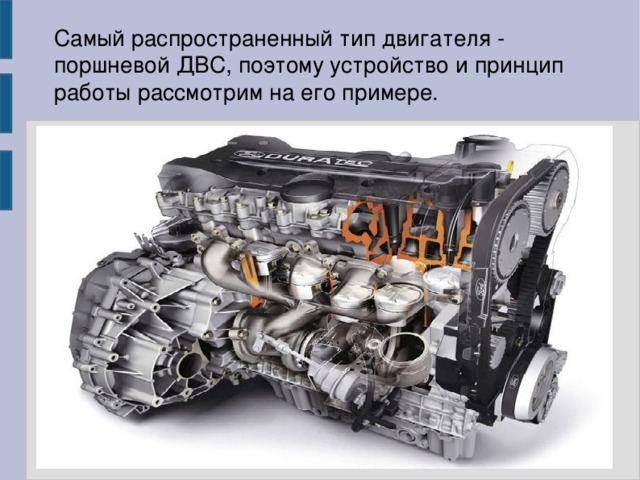 ДВС или двигатель внутреннего сгорания — это механизм, который принадлежит к тепловым машинам. Принцип действия двигателя внутреннего сгорания — преобразование тепловой энергии, получаемой от сгорания жидкого топлива, в механическую.
