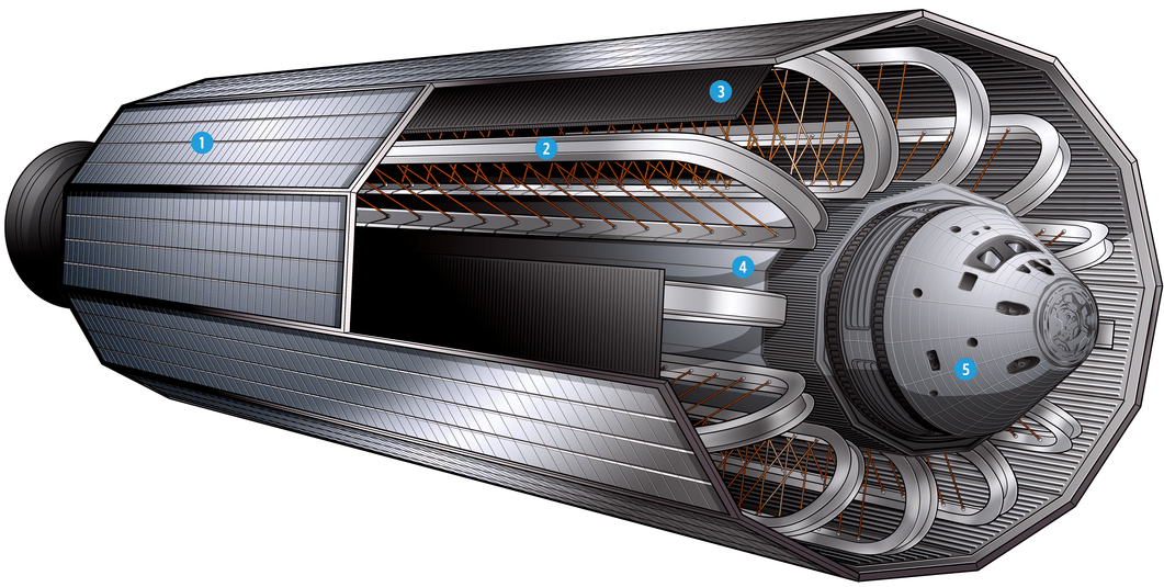 Внутри VASIMR плазму, которая выступает в качестве рабочего тела, помещают в магнитную ловушку, которая не позволяет плазме соприкасаться с конструкциями двигателя и разрушать их за счет высокой температуры. Разработки VASIMR ведутся в США уже более 20 лет и за это время были достигнуты впечатляющие успехи. В августе 2019 года очередной прототип VX-200SS продемонстрировал тягу в 5,4 Н (540 граммов тяги) на мощности 200 кВт и при удельном импульсе в диапазоне от 50 до 300 км/c, на порядок больше ионных двигателей. Такой импульс в идеале позволит с помощью VASIMR добраться до Марса всего лишь за 39 дней вместо 250 суток, как в случае использования ЖРД или ЯРД. Но для этого, конечно, тяга плазменных двигателей должна измеряться сотнями килограммов, а не сотнями граммов. Впечатляющим должен быть и источник электричества на борту такого гипотетического марсианского корабля – он должен иметь мощность около 200 МВт. Второе крыло – энергетическая установка Немалые электрические «аппетиты» ионных и особенно плазменных двигателей наглядно можно показать на примере VASIMR. Но установить VASIMR на МКС оказалось отнюдь не просто. Вся доступная электрическая мощность на МКС меньше 200 кВт, хотя станция сегодня обладает самой внушительной площадью солнечных батарей и является самым энергетически мощным объектом человечества в космосе. Поэтому в проект МКС-VASIMR включили еще целую дополнительную систему солнечных батарей, которая будет часами накапливать энергию на 15-минутные циклы включений плазменного двигателя. Следующий, напрашивающийся шаг после испытаний на МКС – это использование VASIMR для целей орбитального буксира. Например, если мы хотели бы достичь Луны за короткий промежуток времени, сопоставимый с временем полета миссии «Аполлон» к Луне, то такой космический буксир требовал бы пять двигателей VХ-200, потребляющих уже около 1,5 МВт электроэнергии. И вот здесь как раз и может сыграть роль опыт России в создании космических ядерных энергетических установок. Еще в 2009 году Роскосмосом была начата программа создания транспортно-энергетического модуля, ядерная энергодвигательная установка (ЯЭДУ) которого должна была обеспечивать около 1 МВт электрической мощности, чего бы хватило не только для околоземного, но и в перспективе – для лунного буксира. За прошедший период времени был выполнен значительный объем уникальных работ по конструкции космического ядерного реактора. Были созданы уникальные ионные двигатели ИД-500, чьи параметры оказались не хуже разработок НАСА.