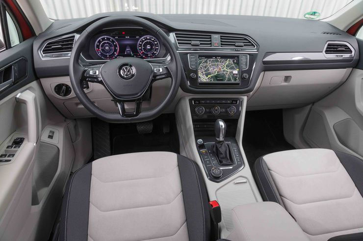 Интерьер Tiguan выполнен в классическом стиле Volkswagen, то есть он простой и функциональный, но не особенно стильный или богатый. Другие автомобили этого класса предлагают больше места для ног во втором ряду, а Tiguan можно заказать с дополнительным третьим рядом сидений.