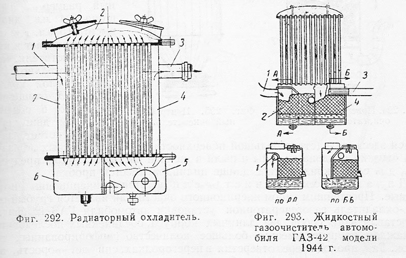 Весь полученный в процессе сгорания дров газ поступал в рубашку, которая окружала бункер. Таким образом достигался подогрев этого отсека. Это было необходимо, чтобы предварительно просушить всю древесину, подготовленную для сжигания. Далее стоит отметить, что после выхода из генератора газ имел температуру примерно 110-140 градусов. Поэтому он должен был проходить через секции радиатора. Там он не только понижал свою температуру, но и попутно очищался от тяжелых химических примесей.