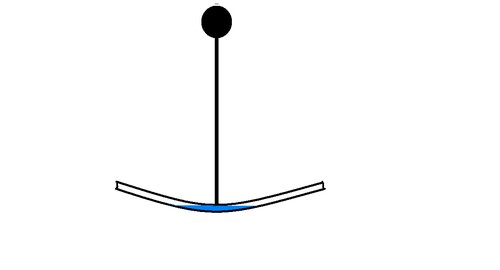 Теперь рассмотрим такой вариант лопасти механизмаОн полый, в нём жидкость.Как поведёт себя если крутить по часовой относительно конца длинного плеча?