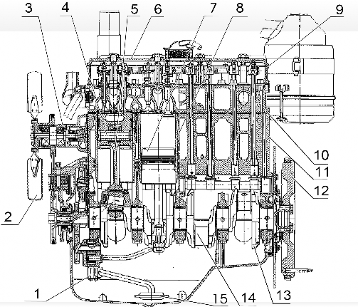 В верхней части предусмотрены каналы для смазывания поршневого пальца. Все вкладыш из биметалла. Маховик чугунный закрепленный на фланце коленвала.