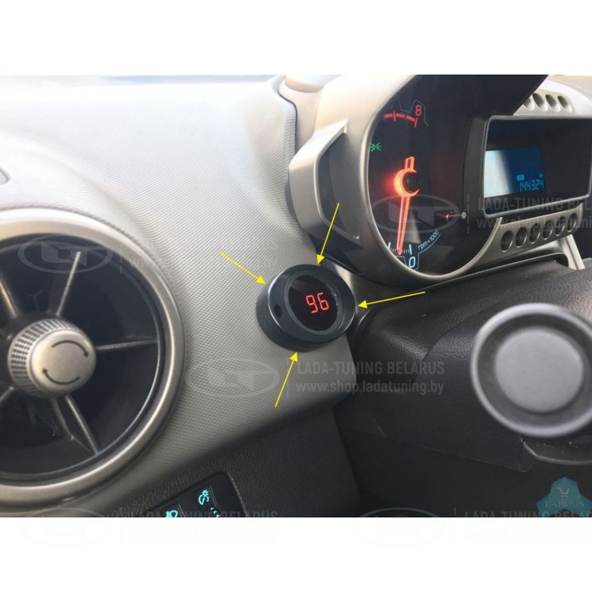 Многие данный индикатор ставят в под магнитофоном. в районе кнопки запуска двигателя, там есть место для него.