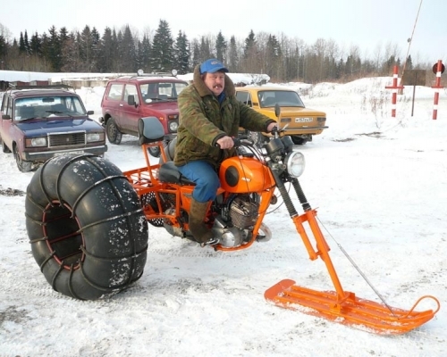Такие мотоциклы (а они сделаны именно из ник) довольно популярны в труднопроходимых участках нашей планеты: тундры, дальний север и т.д.