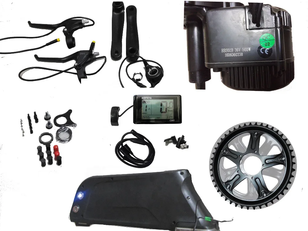 Bafang BBS02 500 Вт 48 В / 36 В комплект двигателя среднего привода с ДИСПЛЕЕМ c961 Plus БЕСПЛАТНЫЕ тормозные датчики или рычаги, БЕСПЛАТНЫЙ инструмент нижнего кронштейна, БЕСПЛАТНЫЙ ПЕРЕДНИЙ СВЕТ количество
