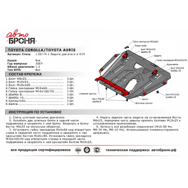 Защита двигателя и КПП — Toyota Corolla (2009—) механика 1.