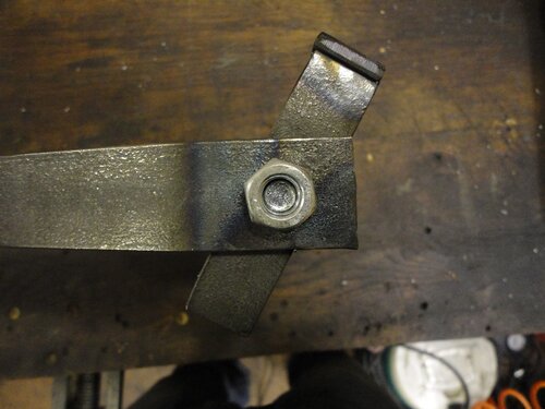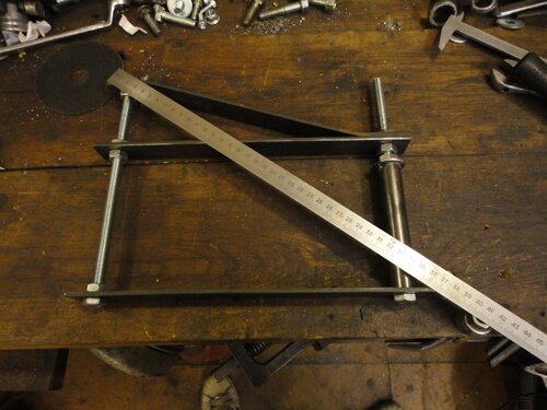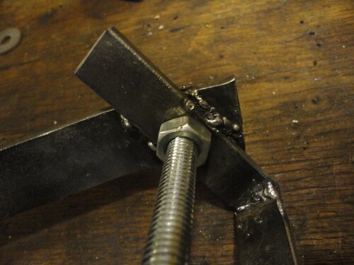 Болтами мы жестко зафиксировали форму, а линейкой проверили геометрию. Теперь нужно приварить рычаг, которым крепеж будет упираться в раму и не давать ему вращаться внутри: