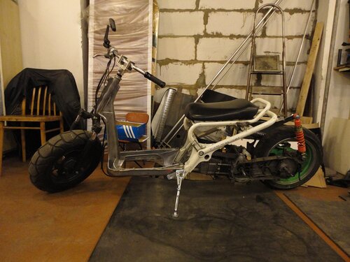 Ребята из Killer Scooter ничего нового не придумали и используют ту же Н-образную конструкцию. Честно говоря, не знаю, почему цена при этом у них отличается в несколько раз - от 500$. Причем по фото нельзя наверняка утверждать, что кронштейн именно для GY6, а не для стокового мотора.