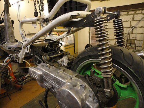 Впереди меня ждет окончательная сварка кронштейна двигателя, варка крепежа для адаптера заднего амортизатора, затем заняться передним дисковым тормозом и выхлопной трубой и...переборка двигателя.