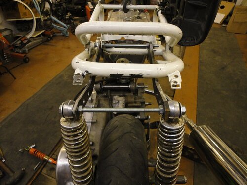 Смотрим, как выглядит байк со штатными креплениями амортизаторов: