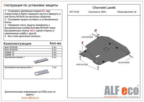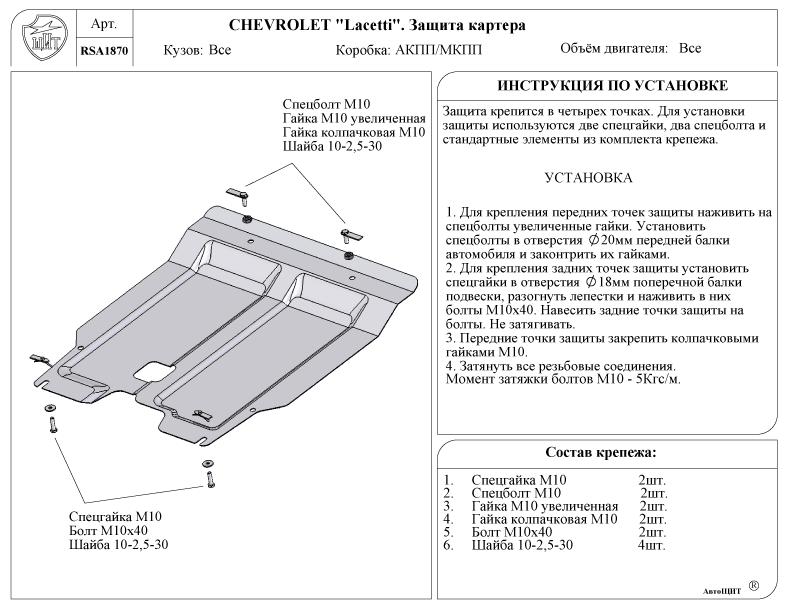 Покупайте защиту картера для Шевроле Лачетти от ведущих производителей: