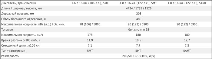 2015 Лада Веста 1.8 (122 лс) | Технические характеристики, данные, расход топлива, габариты