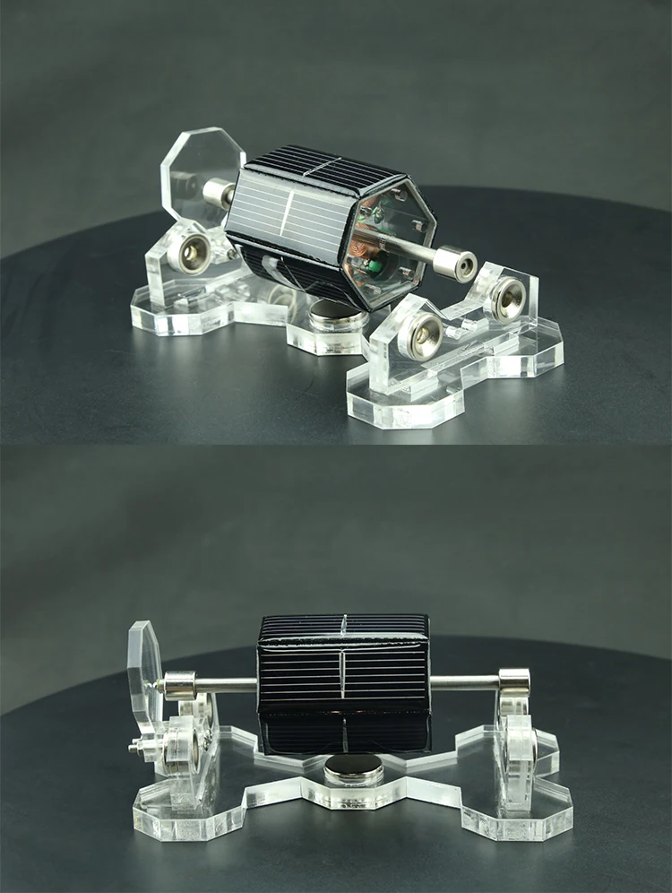 Дополнительный магнит, находящийся под ротором, создаёт магнитное поле для обмоток ротора. Когда свет падает на одну из солнечных батарей, она генерирует электрический ток, который течёт по обмотке ротора. Этот ток производит магнитное поле, которое взаимодействует с полем магнита под ротором. Это взаимодействие приводит ротор во вращение.