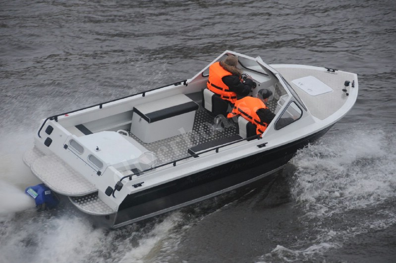 В конструкции водосборника предусмотрено углубление, которое обеспечивает для лодки необходимую маневренность и проходимость, а также уменьшает гидродинамическое сопротивление. Это осуществляется за счет того, что верхняя передняя кромка находится на 35 мм ниже уровня днища.