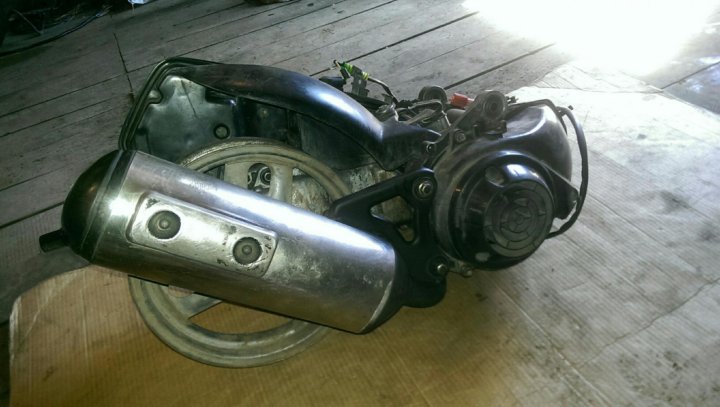 - Следует поставить ваш скутер на какой-нибудь помост, а под центральную часть рамы обязательно установить дополнительный упор в виде нескольких брусков или подходящего по размерам деревянного ящика.