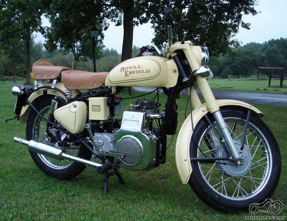 RE произвела собственный дизельный двигатель объемом 325 куб. см для мотоцикла, в котором использовалось стандартное шасси и ходовая часть Bullet, и который, даже с учетом хороших характеристик крутящего момента дизельного двигателя, все еще мог развивать только 6,5 лошадиных сил и 11 фунт-фут крутящего момента, что не соответствует действительности. много, чтобы продвинуть общий вес в 432 фунта. Тем не менее, он мог проехать до 200 миль на галлон, даже если вам потребовался бы весь день, чтобы проехать 200 миль: максимальная скорость составляла 40 миль в час.