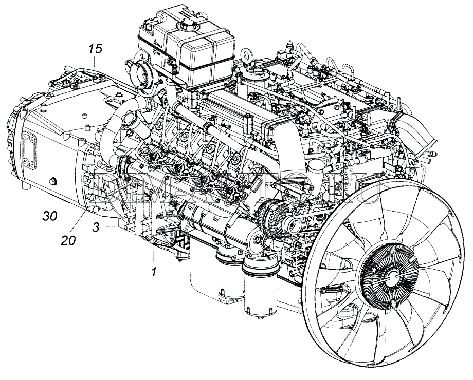 Модель движителя дизель — КамАЗ 740 дизель. коленчатый вал iki puteran ing arah tengen. Силиндер дюве укуран 120 мм, амбане сака — 120 мм. Двигатель КамАЗ 740 каро объемом апа 10,85 л. ditondoi dening jurusan dhuwure komprèsi — 17. Паспортная мощность кВт сака 154 кангго 210. Максимум торса — 650 кгс/м. консумси бахан бакар ситхик намунг 165 л, максимум — 178 л. Ing saben silinder siji tutup welingan iku saiki lan mungguh siji stopkontak.