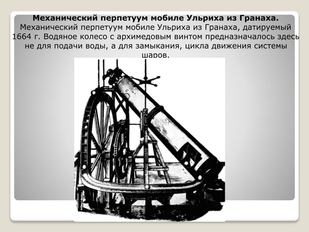 Время между 1150 и 1775 годами, когда Королевская академия наук в Париже перестала принимать предложения «относительно вечных двигателей», было дикой эрой вечных двигателей — все изобретали и строили их направо и налево — демонстрируя королям и массы за приятных гонораров .