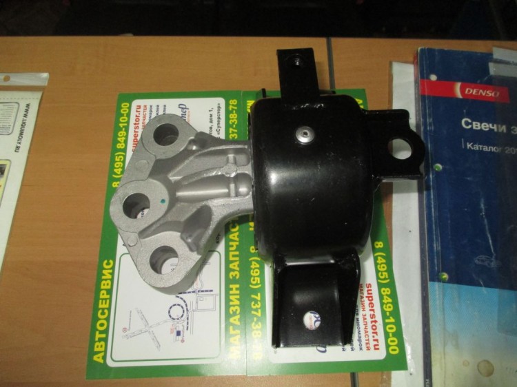Принцип заміни той самий. Двигун піддомкрачуємо зліва, попередньо знявши акумулятор і відпустивши болти кріплення опори до кузова та картера коробки передач (головки на 13 або 15 мм). Так само встановлюємо нову опору і збираємо все на місця.