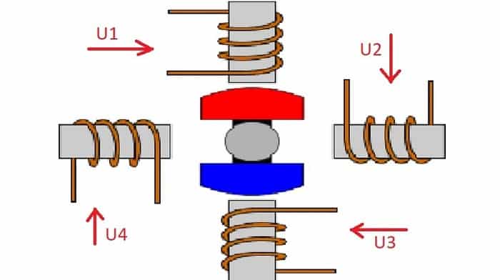 Благодаря этому у ротора есть полюсов с обратной полярностью. То есть и южный, и северный полюс может сместиться относительно статора в 50 различных положений, а в сумме А смещение фаз на четверть дает еще позиций, производится это за счет последовательного возбуждения.