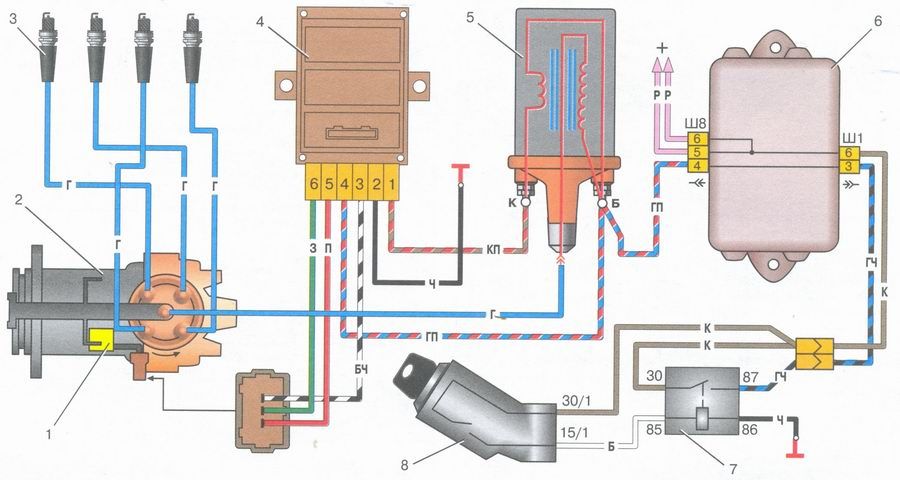 регулятора опережения зажигания, который в свою очередь открывает клапан подогрева