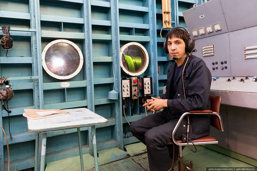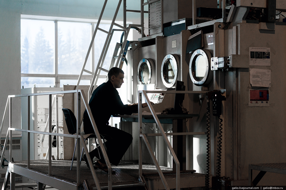 2. По санитарным нормам рабочий может проводить в камере не более 4,5 часов в день. С утра — проверка костюмов, медицинский контроль, и только после этого можно приступать к сварке.Сварщики отправляются в «Атмосферу-24» в легких космических скафандрах. Через первые двери шлюза они проходят в камеру, им прикрепляют шланги с воздухом, закрывают двери и подают внутрь камеры аргон. После того, как он вытеснит воздух, сварщики открывают вторую дверь, заходят в камеру и начинают работать.